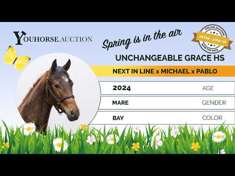 A horse with tremendous scope who already jumps with excellent style. She shows real power over the fence combined with very good technique. In her jumps you see balance, overview and natural reflex. She moves light-footed with a well-carried, powerful canter. Everything indicates quality and long-term potential. A modern sport horse with scope and technique.