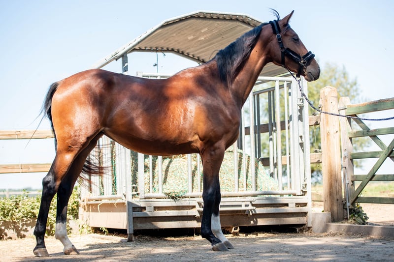 Dieses elegante Stutfohlen hat einen sehr ansprechenden Ausdruck. Sie verfügt über drei schöne Grundgangarten und zeigt großes Potenzial für den Sport. Der Hufschmied kennt sie gut. Sie ist auch beim Putzen und beim Füßebringen sehr brav. Das Halfter anlegen und ihr folgen bereitet keinerlei Probleme. Gute Röntgenbefunde! Für den Sport zugelassen!