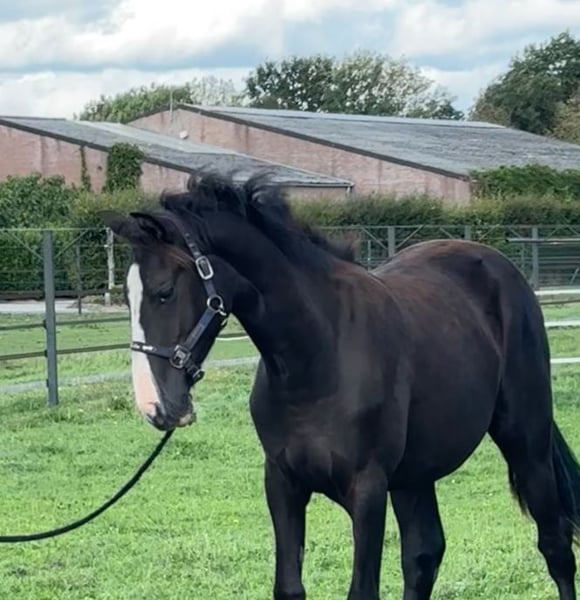 ⚜️ Uhreeste Maxi de Elegante ⚜️ Bent u op zoek naar een veulen met uitstraling, kwaliteit en karakter? Maak dan kennis met onze Maxi – een uitzonderlijk mooi en veelbelovend merrie, ontstaan uit een unieke kruising tussen het temperamentvolle Spaanse 🇪🇸 bloed van het PRE en de moderne elegantie van het 🇳🇱 KWPN warmbloed. PRE-hengsten staan bekend om hun verzameling en kunnen de moderne dressuurpaardenfokkerij enorme expressie en energie geven. Ook het moedige karakter wordt doorgegeven en heeft een zeer positieve invloed op de nakomelingen van de kruising. Deze adembenemende jonge dame is niet alleen een echte blikvanger, maar beschikt ook over alles wat je wenst voor een succesvolle toekomst in de sport en als betrouwbare partner. Vaccineren, ontwormen en hoefsmid – geen probleem! Halvervoer is ook mogelijk met onbekenden. Ze heeft volledig vertrouwen in mensen. Het beste uit twee werelden – kruising PRE x KWPN KWPN-merrie, geboren op 20-03-2024 uit Elegante de Millan III x Lombardi x Ultimo Verwachte eindhoogte: + 1,70 m Onze veulens staan – indien het weer het toelaat – vanaf de geboorte 24/7 buiten. Talrijke studies tonen aan dat dit de basis vormt voor een bijzonder sterk paard. Daardoor zijn ze later minder vatbaar voor blessures, en worden pezen en botten extra sterk. Ze groeien op als familie – merrie, hengst- en merrieveulens samen – wat hun sociale ontwikkeling enorm bevordert. Iets dat veel veulens in de eerste levensmaanden ontbreekt. Ook later in de opfok leven ze in een gemengde kudde met paarden van alle leeftijden, wat zorgt voor een goede opvoeding door een duidelijke hiërarchie. Zo krijgen onze veulens een stevige basis en de best mogelijke start in het leven. Daar zullen ze hun hele leven profijt van hebben – en voor toekomstige eigenaren is het een groot pluspunt om een paard te hebben met zo’n gezonde en stabiele basis. Onze veulens wennen al kort na de geboorte aan alles: tractor, bladblazer, paraplu, heggenschaar – alles wat lawaai maakt in het dagelijks leven.