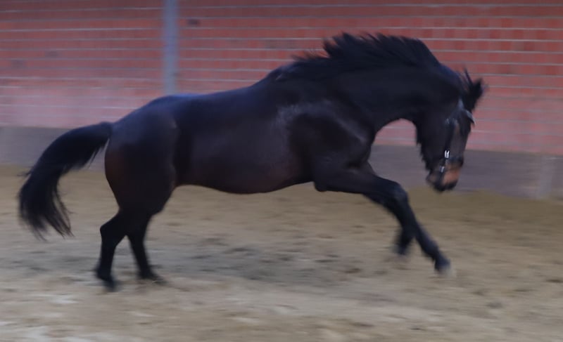 Zum Verkauf Steht hier eine fast 3 j Stute die mit drei guten grundgangarten ausgestattet ist wen sie eine junge Stute mit top Abstammung suchen und selber ausbilden wollen dann wäre ja eventuell diese Stute was für sie . Für das vorstellen unsere Pferde berechnen wir eine gebühr von 20,00€ eine klinische Aku liegt aktuell vor .