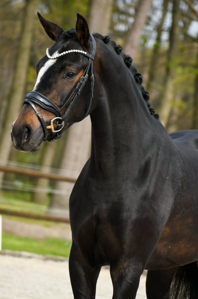 Caballo de doma elegante de 3 años, proveniente de una línea materna consolidada