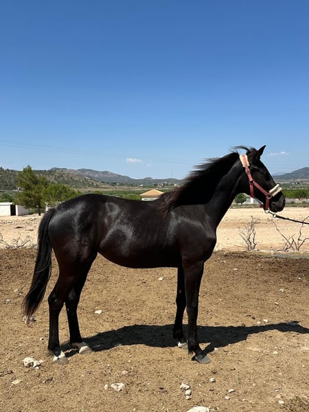 Cette magnifique jument KWPN de 2 ans combine une lignée de premier ordre, trois allures puissantes et un caractère adorable – une véritable promesse pour l’avenir en dressage ! 🧬 Origines * Père : Just Wimphof – étalon Grand Prix, reconnu pour sa maniabilité, sa souplesse et ses mouvements expressifs. * Mère : Charmeur – étalon KWPN approuvé, salué pour sa puissance, son équilibre et son talent pour la collection. * Arrière-grand-père : Gribaldi – étalon d’élite et père de nombreux chevaux de Grand Prix, dont le légendaire Totilas. ✨ **Caractéristiques** * Âge : 2 ans * Inscription : KWPN * 3 allures très bonnes, expressives et élastiques * Morphologie correcte et base solide * Caractère doux, affectueux et orienté vers l’humain * Curieuse, intelligente et avide d’apprendre * Tranquille chez le maréchal-ferrant et habituée aux soins quotidiens * Née chez nous et élevée avec beaucoup de soin 🎯 **Convient pour** * Sport de dressage (jeune jument en développement) * Élevage (lignée très intéressante) * Cavalier ou éleveur attaché à un bon caractère et à la qualité 💶 Prix : à partir de 10 000 € 📍 Localisation : Alicante (Monóvar), Espagne