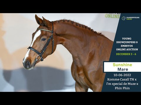 This Sunshine has everything it takes to excel in showjumping. She already demonstrated her talent earlier this year at the KWPN mare inspection, where she was awarded with the ster predicate with 85 points for free jumping. Her dam Lanory is a half-sister to the outstanding broodmare Zanory T, who was named reserve champion at the NMK as a three-year-old and has since proven to be an exceptional producer. Zanory T has foaled the international 1.55/1.60m-level horses Dizzy Lizzy and Key West, as well as the 1.45m-level competing Nova Zembla. This is also the direct dmline of the Grand Prix stallion Iberico, ridden by Roelof Bril. Sire Komme Casall TN excelled in the performance test and was approved with the top score of 86.5 points.