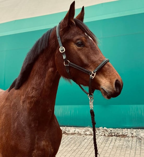 Fey ist eine bildhübsche noch 3-j. Stute mit sehr viel Qualität. Sie zeigt enormes Potential beim Freispringen und meistert gerade die ersten kleinen Sprünge mit viel Übersicht unter dem Sattel was grosses Erahnen lässt. Erst kurz unter dem Sattel lernt sie täglich dazu und zeigt sich hier total unkompliziert. Nur in fördernde Hände.
