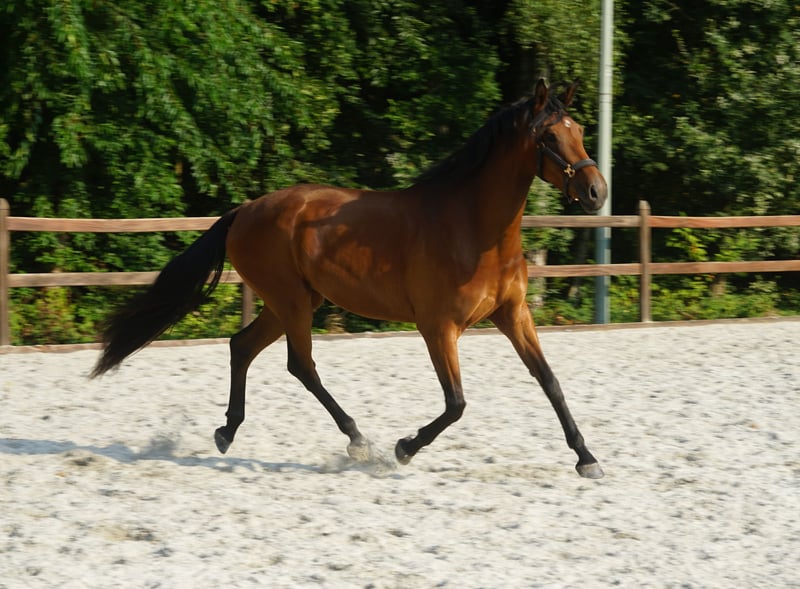 Venta de una yegua de 3 años, 1,73 m, de color marrón, carácter tranquilo, movimientos excelentes, patas secas y bonitas. A principios de este año fue montada por primera vez, pero no ha sido utilizada para más entrenamiento. Recientemente, a principios de octubre, la sacamos del paddock y ahora vuelve a estar en trabajo. Es tranquila bajo la silla y aún no ha sido inspeccionada para su aprobación, pero en caso de rechazo, los costes correrán completamente a mi cargo (confío en mis productos de cría). También se pueden ver otros caballos de la misma línea de sangre. Pedigree: Next Pitch x Scandic (élite) x Jazz (élite NMK, preferente deportivo, en el top 20 del índice de yeguas KWPN) x Hurricane (élite preferente) y tres veces preferente para inspección (reina línea de sangre). Muchísimo deporte en esta línea materna; abuela, bisabuela y tía materna ya produjeron caballos de Gran Premio. ¿Quién se anima a trabajar con esta gran yegua? Es un caballo muy dócil, sociable en el paddock, sin defectos en el box, aún en casco desnudo y actualmente en trabajo de longe. Tras su primera montada, volvió al paddock porque todavía crecía mucho. Número: 0031615490287, vive cerca de la frontera alemana.