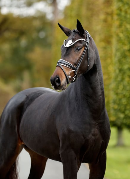 Bailarina compacta en elegante capa oscura y con una presentación impresionante. Ligerísima, con un gran movimiento y excelentes cualidades de temperamento, además de un carácter muy tranquilo, valiente y natural, con amplias posibilidades bajo una adecuada preparación. También cubre jinetes de mayor tamaño sin problema (rejinete en el video mide 1,79 m). Un diamante en bruto que puede ser desarrollado con cuidado, ideal para jinetes ambiciosos. Criada de forma sostenible y saludable. Se dispone de un buen informe de inspección para envío inmediato.
