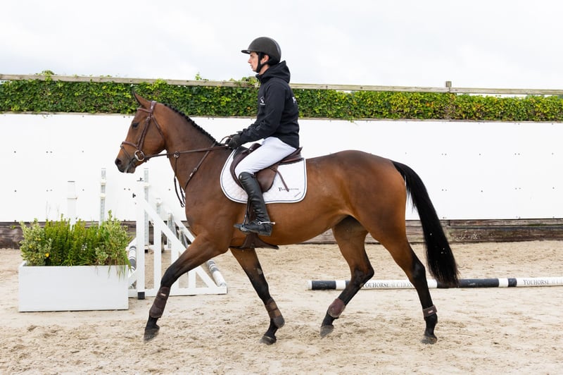 Reopatra, a four-year-old mare, has already competed in 1.00m courses. She is a refined blood-type mare with a light-footed canter and an elegant jumping style. Her sire is the renowned Chacco Blue, a former 1.60m Grand Prix horse with over 220 offspring competing at 1.60m level and above, including the 1.70m Grand Prix stallions Chadino, Chaqui Z, Chacco’s Son I, and Chaclot, as well as the 1.65m GP stallion Chacco Blue II. Her dam, Cleopatra de Kreisker Z, is well-bred as a daughter of Cornet Obolensky and the 1.55m Grand Prix mare Cerruti de Kreisker (ridden by Italy’s Filippo Bassan). Cerruti has produced two eight-year-olds competing internationally at 1.30m and 1.35m levels. Great-granddam Quindy de Kreisker (Diamant de Semilly), a full sister to two 1.55m GP horses, has produced no fewer than twelve offspring competing at 1.35–1.55m levels, including the approved stallions HH Einstein de Hus (1.55m GP) and Filou de Hus (1.50m). Quindy herself is a daughter of the 1.60m Grand Prix mare Jumpy de Kreisker. https://youhorse.auction/en/auction/Reopatra-CHACCO-BLUE-x-CORNET-OBOLENSKY