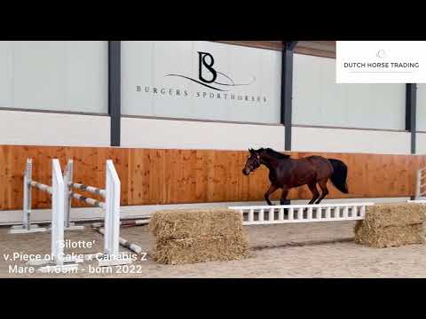 Weer een geweldige kans om een jong toptalent te kopen, klaar om aan de gang te gaan en te shinen in de ring later in 2026! Zeer aansprekend chique model , mooi front en veel uitstraling. Beweegt lichtvoetig en met veel techniek en balans, makkelijk changeren. Springt met een voorbeeldige techniek, veel overzicht en veel vermogen. Fijn karakter in de omgang, eerste paar keer aan de longe geweest en zeer werkwillig! Komt uit zeer goede moederlijn! Deze merrie zal online worden geveild tijdens de Dutch Horse Trading Auction aankomende donderdag! Registratie is GRATIS, bezoek de website voor alle informatie, foto's, video's en keuringsrapporten. Kopieer/plak de volgende link uw browser om naar de website te gaan: https://dutchhorsetrading.auction/en/auction/Silotte-FB-Piece-of-Cake-M-x-Canabis-Z