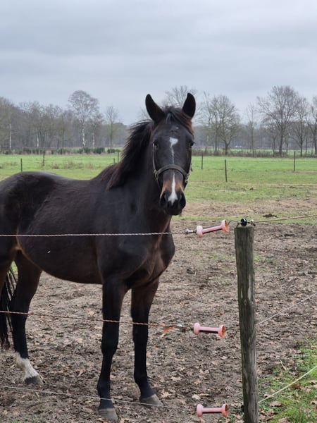 Secret Dream LB is een super lieve en vriendelijke merrie. Ze is 3 jaar en is nog onbeleerd. We hebben haar zelf gefokt. Ze heeft tot 2 jaar in de opfok gestaan en daarna heeft ze bij ons thuis op de wei gelopen met haar maatje. Momenteel gaat Secret elke dag aan de hand mee naar buiten en in de nacht op stal. Moet nog veel leren, maar bij het juiste vertrouwen een heel fijn paard om mee te werken. Absoluut niet gemeen en geen merrie streken. Kent de smid en poetsen. https://www.kwpn.nl/database?paard=P-677392