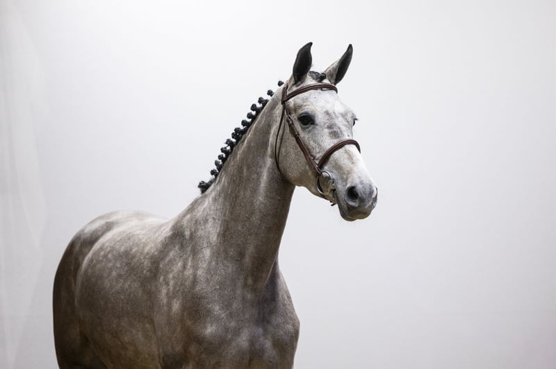 Beautiful grey, only four weeks under saddle. He has a good attitude and is already pleasant to ride. He takes everything on easily and stays relaxed in his body. Over the fences he is careful and jumps a bigger fence naturally. A young horse with quality and natural ability. Sire Ci Ci Senjor Ask (1.60m) is by Cassini I (1.60m) out of a Capitol I damline. He produced multiple 1.60m performers such as Ci Beau Ask, Cicci BJN and Senjor Catello. A proven Holsteiner sire line with scope and technique firmly anchored. Dam Nateusie-S (by Ducati van Schuttershof 1.55m) traces back to Arusa S (by Berlin 1.60m). From this direct line come several 1.45m–1.60m performers including Amareusa S, Oteusi, Illusion, New Mexico, Re Mexico, Jumping Jack ZF, India Blue ZF, Goteusi and Uterusa. Further down the damline through Ferusa (by Le Mexico) and Terusa (by Lucky Boy xx), this family consistently produces 1.45m–1.60m sport horses and approved stallions. A strong and proven performance line.