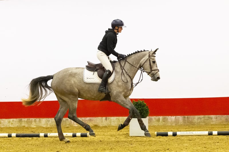 Schöner grauer Wallach, erst seit vier Wochen im Sattel. Er hat eine gute Einstellung und ist bereits angenehm zu reiten. Er nimmt alles leicht auf und bleibt im Körper entspannt. Über die Sprünge ist er vorsichtig und springt auch größere Hindernisse natürlich. Ein junges Pferd mit Qualität und natürlichem Talent. Vater Ci Ci Senjor Ask (1,60 m) stammt von Cassini I (1,60 m) ab, aus einer Capitol I-Linie. Er hat mehrere 1,60-m-Sportler hervorgebracht, darunter Ci Beau Ask, Cicci BJN und Senjor Catello. Eine bewährte Holsteiner Zuchtlinie mit fest verankerter Springqualität und Technik. Mutter Nateusie-S (von Ducati van Schuttershof, 1,55 m) geht zurück auf Arusa S (von Berlin, 1,60 m). Aus dieser direkten Linie stammen mehrere Sportpferde zwischen 1,45 m und 1,60 m, darunter Amareusa S, Oteusi, Illusion, New Mexico, Re Mexico, Jumping Jack ZF, India Blue ZF, Goteusi und Uterusa. Weiter oben in der Mutterlinie, durch Ferusa (von Le Mexico) und Terusa (von Lucky Boy xx), bringt diese Familie konsequent Sportpferde und zugelassene Hengste im Bereich von 1,45 m bis 1,60 m hervor. Eine starke und bewährte Leistungslinie.