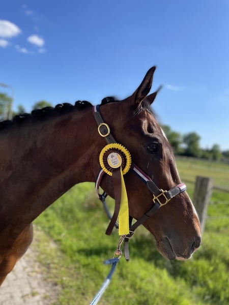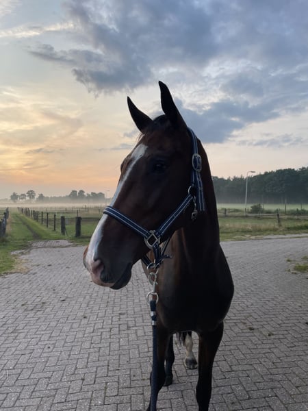 Prachtige 4 jarige merrie te koop. Januari dit jaar zadelmak gemaakt en toen ook al mee geweest naar een jonge paarden opleiding. L1 geklasseerd en gaat regelmatig mee op concours. Braaf bij de smid en op stal. Het is een brave merrie maar wel 1 met looplust. Geschikt voor een ervaren en stoere ruiter. Niet geschikt voor een onzekere ruiter in verband met leeftijd. Goedgekeurd klinisch en röntgenologisch