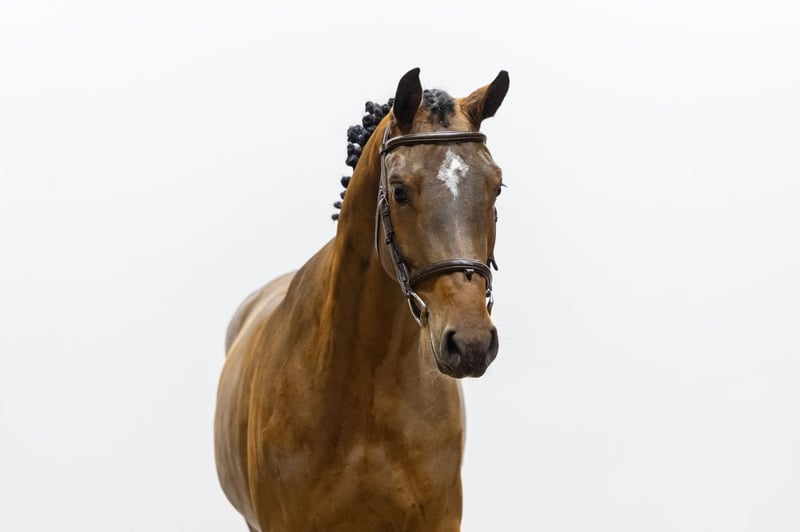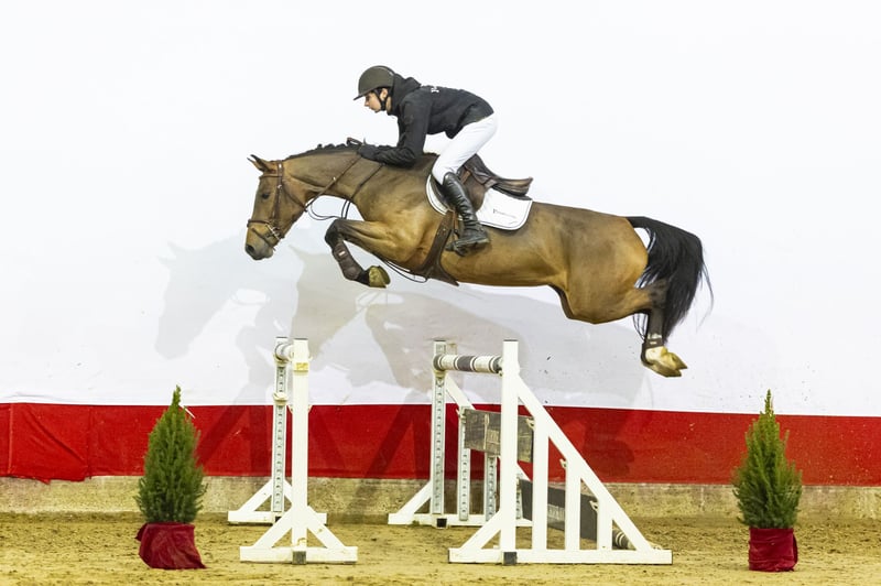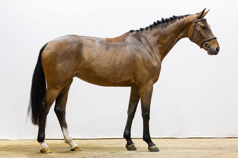 Raja J is a high-quality mare with a modern, athletic model. She is sharp, careful and shows attractive scope. She was started under saddle earlier this year and subsequently produced a foal by Jenson van ’t Meulenhof. She has now been back in work for about two months and is picking up her training remarkably well. Over the jump, Raja J displays natural ability: correct front-leg technique, quick reflexes and ample scope. Her movement is light and elastic, making her a very promising sport mare for the future. She is sired by Pegase van ’t Ruytershof, a stallion competing at the highest level and increasingly recognised for producing modern, talented offspring. Her dam jumped 1.30m and comes from a particularly valuable damline. This family has produced several approved stallions, including the KWPN-licensed Forsyte, the Zangersheide-approved Assadena J, as well as multiple other licensed stallions and successful sporthorses. With her modern type, strong attitude and proven pedigree, Raja J offers significant potential — both in sport and in future breeding.