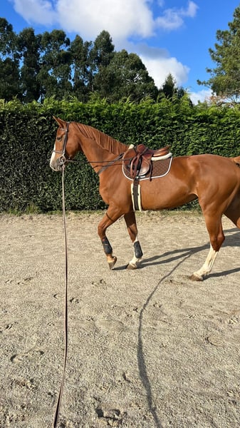 ¡Claro! Aquí tienes un anuncio de venta para tu caballo, redactado de manera profesional y atractiva: --- **KWPN Mare | Born 2022 | Chestnut | 170 cm | Jumping** We are pleased to offer this promising KWPN mare, born in 2022, standing approximately 170 cm at the withers. This elegant alazán combines classic KWPN quality with a modern, athletic build, making her an excellent prospect for show jumping or eventing. Her conformation is balanced and harmonious, with a strong, scopey jump and a natural aptitude for the sport. She has been well-handled from a young age and shows a willing, trainable attitude under saddle. Her movement is expressive and rhythmic, with good elasticity and impulsion, ideal for a rider looking to develop a competitive jumping or dressage horse. This young mare has a bright future ahead and is suitable for riders and trainers aiming to bring out her full potential. She is healthy, sound, and ready for her next chapter in a professional or amateur sports program. For more information or to arrange a visit, please contact us. Serious inquiries only. --- ¿Te gustaría que agregue algún detalle adicional o que adapte el tono a un público específico?