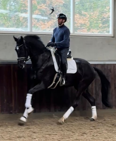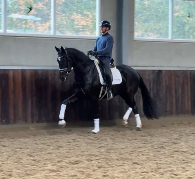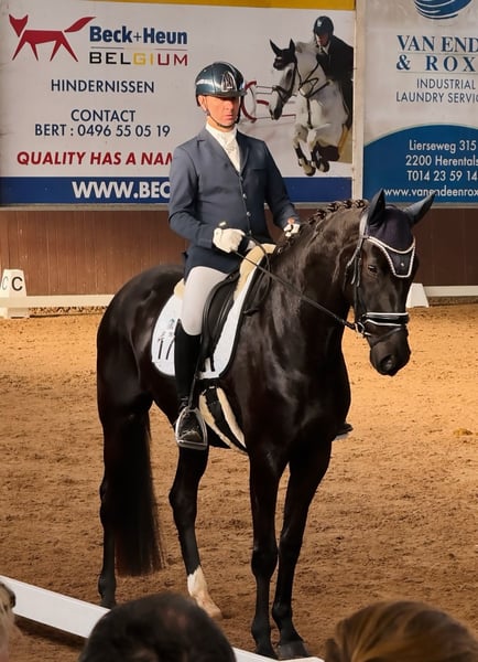 Simbiose ist eine wunderschöne 4-jährige Stute mit drei korrekten Grundgangarten und einem modernen Erscheinungsbild. Sie kam als Fohlen zu uns und ist bei uns im Stall aufgewachsen, sodass ihr Hintergrund und ihre Ausbildung vollständig bekannt sind. Sie hat einen braven, zuverlässigen und sehr kooperativen Charakter und zeigt bei der täglichen Arbeit viel Einsatz und Lernbereitschaft. Simbiose war bereits mehrfach mit auf Jungpferde-Dressurtests und zeigt sich dabei stets vorbildlich – sowohl auf fremdem Gelände als auch beim Transport ist sie absolut unkompliziert und ruhig. Sie ist nicht schreckhaft und immer angenehm im Umgang, was sie zu einem echten „easy to work with“-Pferd macht. Damit ist Simbiose das ideale Nachwuchspferd für jemanden, der auf der Suche nach einem talentierten jungen Dressurpferd mit einer hervorragenden Einstellung und viel Potenzial für den weiteren Sport ist. Kaufpreis: € 25.000,- inkl. MwSt.