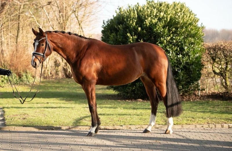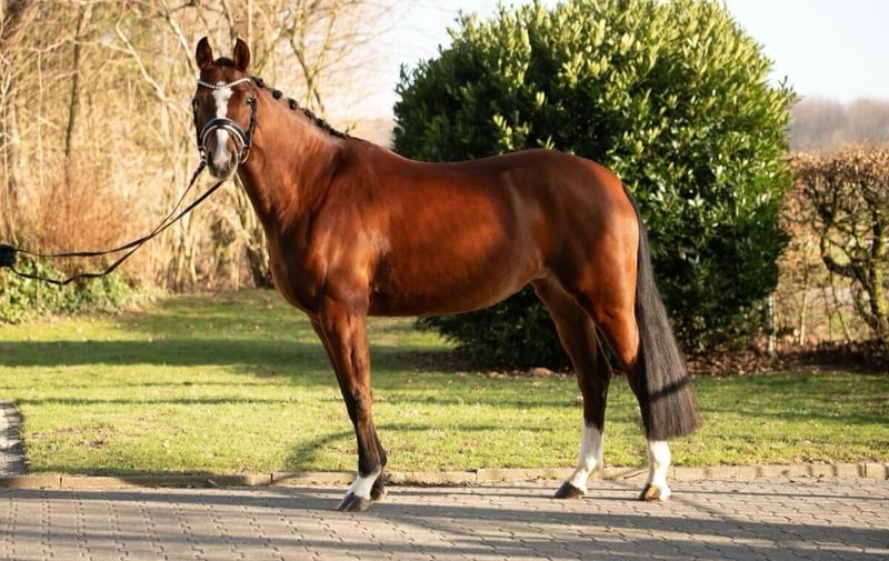 Exceptionally beautiful mare Very rideable and well-behaved in handling Immediately placed in Jumping Horse Class A Due to her rideability and good basic gaits, also very suitable for dressage Great all-rounder for dressage, jumping, and leisure riding