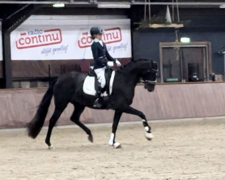 Yegua de élite de 5 años con pedigrí excepcional. Una yegua completamente confiable, con mucha actitud de trabajo. Siempre responde muy bien y tiene mucho carácter. La pasada invierno, tras solo 10 semanas de entrenamiento, realizó una prueba de yegua de cría con notas de paso, trotón y galope de hasta 8,5. Paso 8,5, trotón 8,5 y galope 8,0. Fue inmediatamente designada como yegua de élite por el studbook KWPN. ¡También es muy interesante para la reproducción! Esta yegua es media hermana del semental aprobado So Rafiq, por So Perfect. Actualmente está criando a su segundo potro, que será destetado a finales de octubre. Por ello, en este momento no está montada. La yegua cuenta con un examen veterinario completo sin observaciones relevantes. Disponible a petición.