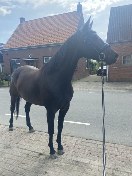 Very attractive 5-year-old mare by Westenwind x Olivi. Prada Melia is well-behaved, loves to cuddle, and gets along well with other horses. She is good in traffic and enjoys going out on trail rides both with other horses and alongside a bike. However, she doesn't find it as enjoyable alone and is a bit more alert, but with the right motivation and perseverance, she does well in this too. She often goes out for lessons or with my 8-year-old daughter, and she is really well-behaved during those times. In the arena, she does her rounds nicely, but due to a lack of time, this hasn't been done often. Therefore, she is currently being ridden at a B level with some beginning lateral work. Constant training in the arena, dressage-wise, can sometimes be a bit boring for her; she enjoys variety, including both a pole and a small jump. Prada would make a good family horse and would certainly not look out of place in the dressage ring. She has three correct gaits and a beautiful conformation with a lovely head. Prada will only go to a very good 5-star home and the right match. She was recently approved for sport on July 25, 2025. Inspection report available upon serious interest. Price is negotiable for the right match.