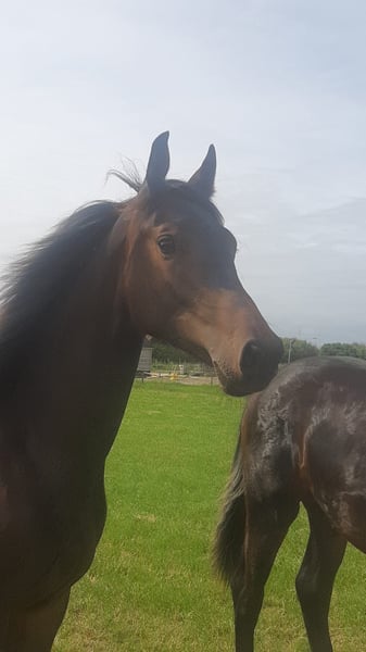 Sehr hübsche 5-jährige Stute von Westenwind x Olivi. Prada Melia ist brav im Umgang, ein Schmusepferd und kann gut mit anderen Pferden. Sie ist gut verkehrssicher und geht gerne ins Gelände, sowohl mit anderen Pferden als auch mit dem Fahrrad. Alleine findet sie es nicht so gemütlich und ist dann etwas aufmerksamer, aber mit der richtigen Motivation und Durchhaltevermögen meistert sie das auch gut. Sie geht oft mit zum Unterricht ins Gelände oder mit meiner 8-jährigen Tochter, da ist sie wirklich top brav. In der Halle macht sie brav ihre Runden, jedoch wurde dies aufgrund von zu wenig Zeit nicht oft gemacht. Daher wird sie auf B-Niveau mit beginnenden Seitengängen geritten. Ständig in der Halle findet sie das Dressurtraining manchmal etwas langweilig, sie liebt die Abwechslung. Sowohl ein kleines Hindernis als auch einen kleinen Sprung. Prada wäre ein gutes Familienpferd und würde sich sicherlich auch in der Dressurviereck gut machen. Sie hat 3 korrekte Gangarten und ein schönes Modell mit einem prächtigen Kopf. Prada geht nur in ein sehr gutes 5*-Sterne-Haus und zur richtigen Person. Sie wurde kürzlich für den Sport geprüft. 25. Juli 2025. Prüfbericht kann bei ernsthaftem Interesse angefordert werden. Der Preis ist bei passender Übereinstimmung verhandelbar.