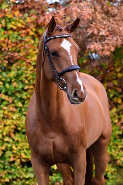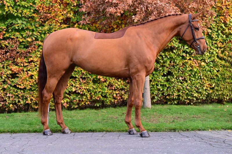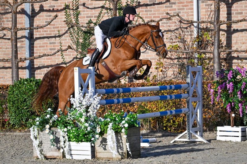 This beautiful Chacco-Blue mare stands out in many ways. Not only does she boast an exceptionally interesting pedigree, she also shows outstanding jumping qualities and has a very kind, cooperative character. Her sire Chacco-Blue needs no further introduction, and on the dam’s side we find top producers such as For Pleasure and Cantos. This family has already produced several 1m50–1m55 horses, including Wodan M (Quidam de Revel), C’est La Vie (Chin Chin), Frau Antje (Diamant de Semilly), as well as Lugano van La Roche, a stallion with great influence in Belgian breeding. Under saddle, she is extremely easy to ride—light, responsive, and with the right amount of blood. Her canter shows remarkable balance and natural adjustability, and she changes leads effortlessly. When jumping, she displays plenty of power, willingness, and a correct, quick technique. At competitions she remains relaxed and confident: not spooky, focused, and easy to handle. We believe this mare has a bright future in the sport and is suitable for both female and male riders. She would also make a lovely partner for a talented young rider looking to grow with a quality horse. In the case of direct export to non-EU countries, VAT is no longer applicable (21% becomes 0%). If the export is delayed (but happens as soon as possible), the VAT will be refunded after we have received the official export document (which is drawn up by customs).