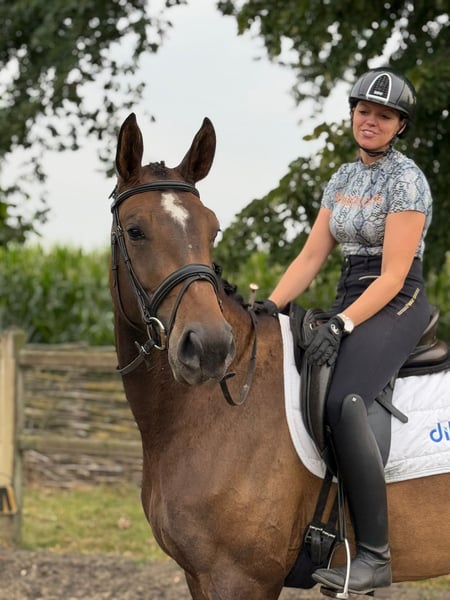 Very nice 4-year-old mare, was backed in May 2025 and is already the most exemplary child in the class. Super well-behaved and smart, she enjoys working and learns new things easily. The basics for a four-year-old are fully known, she also goes for walks and travels without problems. Good with the farrier, veterinarian, and during transport. Well-proportioned, not spooky/scared, easy to mount and ride off.