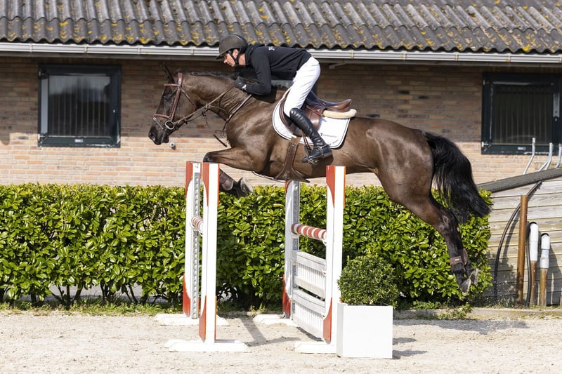 Passieniki is a beautifully built, strong horse with a modern type and excellent balance. She is a pleasure to ride, has a good temperament, and performs all tasks with ease. She has a good canter and jumps with a graceful style. Over the fence, she demonstrates solid hindquarter technique, is quick off the ground, and shows that she jumps with both ease and quality. An agile horse that inspires confidence. As a young horse, she foaled a foal and has been ridden for about six months. Despite still being relatively green, she already has experience up to 1.00 m level and shows a very good attitude. A horse that is easy to develop further and that adapts well to training. Her sire, I’m Special de Muze, jumps at 1.50 m and is a son of Emerald van ’t Ruytershof (1.60 m) from the renowned Qerly Chin line, which guarantees power and top-level performance. Her dam, Harmoniki, is a daughter of Bodinus (1.20 m) and comes from a strong sport line. Her granddam, Viawiki (1.30 m), produced several sport horses: - Connection (1.60 m) - Houdini (1.45 m) - Estador (1.45 m) - Flying L’Amuse Uitgeest (1.35 m) - Graniki (1.30 m) Additionally, she has produced multiple horses at 1.30 m level. Behind her stands the mare Kiwiki, a proven broodmare with several sport horses, underscoring the durability and athletic talent of this lineage. A line with proven performance and a strong foundation.
