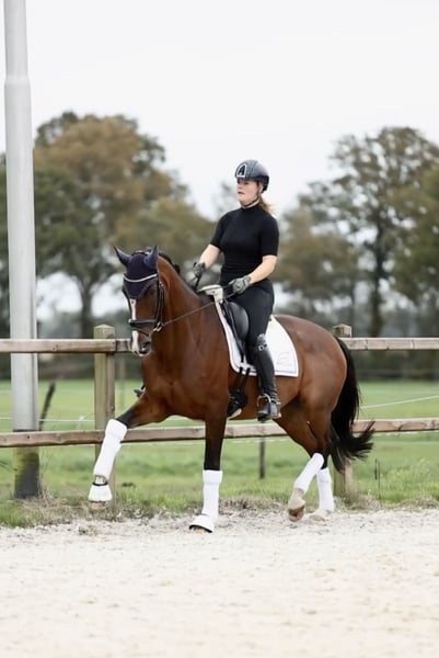 Puerto Montt Uitzonderlijke 5,5-jarige merrie van Ferguson 1.70 m Maak kennis met Puerto Montt, een prachtige 5,5-jarige merrie van Ferguson die werkelijk alles in huis heeft ; kwaliteit, karakter en charisma! Met haar gouden hart en aanhankelijke aard is Puerto een echte lieverd die dol is op aandacht en quality time. Ze is net zo vriendelijk en zachtaardig in de omgang als ze indrukwekkend is onder het zadel. In haar werk schittert Puerto. Ze is met succes uitgebracht op L-niveau, beheerst al met vertrouwen de oefeningen van het M-niveau, en laat zelfs al een nette groene vliegende wissel zien. Ze toont een uitstekende rijdbaarheid en een geweldige bereidheid om te leren. Haar potentieel voor de hogere klassen is duidelijk aanwezig! Haar beweging is alles wat je van een kwaliteitsvol jong paard mag verwachten. Zeer ruime stap, elastische draf en een expressieve, bergop galop! Puerto maakt overal indruk waar ze komt. Ze is makkelijk in de omgang op concours, gedraagt zich voorbeeldig op vreemd terrein en trekt altijd de aandacht in de ring, een echte blikvanger! Ook in de dagelijkse omgang is ze erg gemakkelijk; perfect bij de hoefsmid, makkelijk te laden en reist probleemloos alleen. Kortom, een paard om van te genieten. Met haar talent, instelling en potentieel voor de hogere niveaus behoort Puerto Montt tot de hogere prijsklasse en wordt zij enkel verkocht aan een vijfsterrenhuis. Vraagprijs is iets gewijzigd. Contact +31 6 50 41 26 20 annigje.tolman@hotmail.com