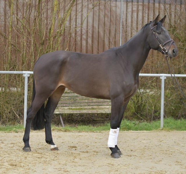Discover your ideal partner in show jumping: our nearly black mare, born in 2020! This charming mare impresses not only with her striking color but also with her gentle nature. She is perfect for children and offers safe, reliable handling, while also demonstrating impressive jumping ability. ### Features: - **Almost black coat color:** Her eye-catching appearance makes her a real eye-catcher in the stable and on the course. - **Child-friendly:** This mare is very well-behaved in handling and ideally suited for young riders. - **Excellent jumping quality:** She exhibits remarkable talent in jumping, impressing with her technique and bravery. - **Easy to ride:** She responds sensitively to aids and is suitable for both beginner and advanced riders. ### Special Offer: Secure a **5% discount** on the sale price with immediate pickup! ### Test opportunity: Take the chance to test this talented mare for one week! Experienced trainers can accompany her during the trial week, and you have the option to combine it with riding lessons. Please note that a trial fee applies, which is not deducted from the purchase price. ### Trial riding: See for yourself what she can do! You are welcome to come and view her. The cost for a pre-ride or trial session is **€30 per person**. Come by and experience the horse that will win your heart!