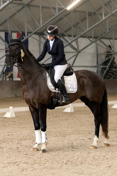 7-letnia klacz ujeżdżeniowa (Galaxie / Jazz x Gribaldi) Nikita to wyjątkowo obiecująca klacz ujeżdżeniowa, która idealnie sprawdzi się jako partnerka do podbijania czworoboków. Zajeżdżona w listopadzie 2025 roku — wcześniej była matką, dzięki czemu jest koniem dojrzałym, spokojnym psychicznie i bardzo zrównoważonym. Klacz dysponuje bardzo dobrymi trzema chodami, z wyraźnym ruchem „pod górkę”, dużą obszernością i naturalną elegancją. Jest po pierwszych zawodach, obecnie przygotowywana do klasy P. (Ustępowania, łopatki, zagalopowania ze stępa) Podczas startu otrzymała bardzo pozytywny komentarz od sędziny P. Pawłowskiej: „Piękny, utalentowany koń z dobrym ruchem i dużą obszernością." oraz ,,Elegancki koń z możliwościami do osiągania wysokich wyników.” Nikita jest koniem delikatnym i wrażliwym, potrzebującym spokojnego, konsekwentnego jeźdźca, ale bardzo ambitna i chętnie uczy się nowych rzeczy. Uwielbia pracę z człowiekiem. W pracy bardzo oddana, chętna do współpracy i grzeczna w codziennym użytkowaniu. ✔ chodzi na padok oraz do karuzeli ✔ regularnie werkowana i odrobaczana ✔ grzeczna przy goleniu i wszelkich zabiegach ✔ bardzo dobry TUV z listopada — do wglądu 📹 Filmy wysyłam zainteresowanym 📱 WhatsApp: 666 377 305 📍 Becker Sport, pod Warszawą 🐎 W ofercie również inne konie (głównie skokowe)