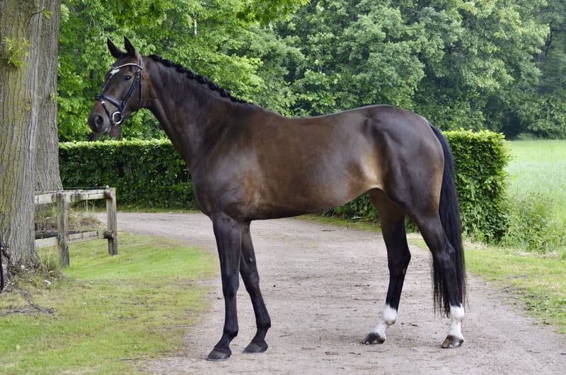 Czy marzysz o karierze w ujeżdżeniu na wyższym poziomie? W takim razie Nirvana (For Gribaldi x Trento B) jest dla Ciebie. Pochodzi z bardzo sportowej linii rodowodowej, z której wiele koni odnosi sukcesy na wysokim, międzynarodowym poziomie sportowym. Jej pełny brat odnosi sukcesy na poziomie Lichte Tour pod Jill Huijbregts. Pełna siostra została sprzedana na aukcji w wieku trzech lat za Diederika van Silfhouta. Również Nirvana, dzięki swojemu talentowi do zbierania, wydaje się mieć potencjał, by wspinać się na wyższe poziomy. Obecnie jest klasyfikowana na poziomie M2, ale zna ćwiczenia wykraczające poza ten poziom, w tym skacze zieloną zmianę. Nie jest odpowiednia dla początkujących i potrzebuje pewnego siebie jeźdźca. W wieku trzech lat została klinicznie i rentgenologicznie przebadana i zatwierdzona. Cena 18.000 euro.
