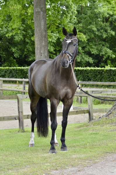 Träumst du von einer Dressurkarriere auf höherem Niveau? Dann ist Nirvana (For Gribaldi x Trento B) genau das Richtige für dich. Sie stammt aus einer sehr sportlichen Linie, aus der mehrere Pferde auf hohem Niveau im (internationalen) Sport aktiv sind. Ihr Vollbruder läuft erfolgreich in der Klasse Lichte Tour unter Jill Huijbregts. Eine Vollschwester wurde im Alter von drei Jahren auf einer Auktion an Diederik van Silfhout verkauft. Auch Nirvana scheint mit ihrem Talent zum Sammeln das Potenzial zu haben, nach oben zu kommen. Derzeit ist sie in M2 eingetragen, kennt aber Übungen für eine höhere Klasse, bei denen sie einen grünen Wechsel springt. Sie ist nicht für Anfänger geeignet und benötigt einen selbstbewussten Reiter. Mit drei Jahren wurde sie klinisch und röntgenologisch gründlich untersucht und freigegeben. Verkaufspreis 18.000 Euro.
