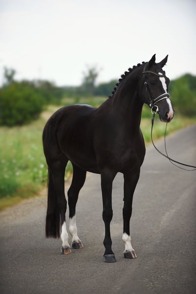 Hermosa yegua negra en venta, preferiblemente como yegua de cría en un hogar permanente, ya que se pone nerviosa bajo la silla. La adquirí a finales de 2024 como futuro caballo de doma. Tiene 4 años y fue montada brevemente, luego estuvo en el prado porque su entrenadora se lesionó y fue vendida a mí desde los Países Bajos a finales de 2024. La hemos montado durante 3 meses en invierno y actualmente 1 mes, y en general ha ido muy bien. Se puede montar con mucha facilidad en los tres aires. Es suave al asiento y ya está constante en la conexión. Sin embargo, se apega mucho a otras yeguas, es extremadamente amigable con todos los caballos, se integra muy bien, pero también quiere quedarse con esos caballos. Si está sola, se pone muy nerviosa; aunque no es asustadiza, puede salir corriendo de repente y saltar. Seguramente esto tiene mucho que ver con su celo, ya que hace cosas extrañas. No se levanta ni se da aires, pero lamentablemente no se puede sentar cuando salta. Personalmente, debido a mi edad, necesito un caballo seguro; de lo contrario, seguiría montando. A pie y en el trato diario es muy tranquila y manejable, incluso en situaciones difíciles y bajo tensión, como durante una tormenta, etc. También se carga muy bien. Vale mucho más de lo que se indica en el rango de precios aquí, pero deseo un criador para ella con un hogar permanente, ya que se puede querer mucho. Por su naturaleza, la veo como una yegua de cría. Sin duda, se puede educar, también es muy amigable y se centra en el jinete, haciendo progresos muy rápidamente. Sin embargo, hay que asumir que se puede caer, incluso si se tiene buena estabilidad en la silla. No se puede probar montando. La yegua fue operada en la parte trasera derecha debido a un chip y va sin cojera. ¡No se vende a comerciantes!