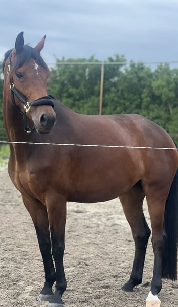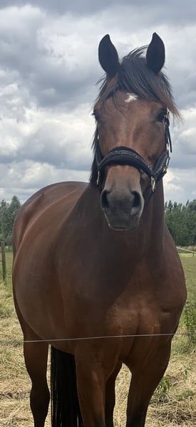 KWPN Mare Omonte Utopia – Talented Young Mare with Top Pedigree For sale: Omonte Utopia, a KWPN mare, dark bay, born on May 22, 2019, with a height of 1.68 m. Omonte comes from an excellent bloodline: Incognito x Painted Black, making her not only an attractive prospect as a sport horse but also a promising future broodmare. In 2021, she was radiographically approved for sport. She is saddle-trained and familiar with basic work, but still green in dressage. This makes her ideal for someone who wishes to further develop her themselves. Omonte is very willing to work, eager to learn, and enjoys her training. She also loves forest rides, making her a versatile and pleasant partner. I am looking for an ambitious rider — whether amateur or professional — who has the time and patience to continue her development and grow together in the sport. 📍 Suitable for: ambitious amateur / professional 🐴 Character: willing, easy to ride, eager to learn 🧬 Pedigree: Incognito x Painted Black 💰 Asking price: €7,500 For more information or to arrange a meeting, please send a serious inquiry.