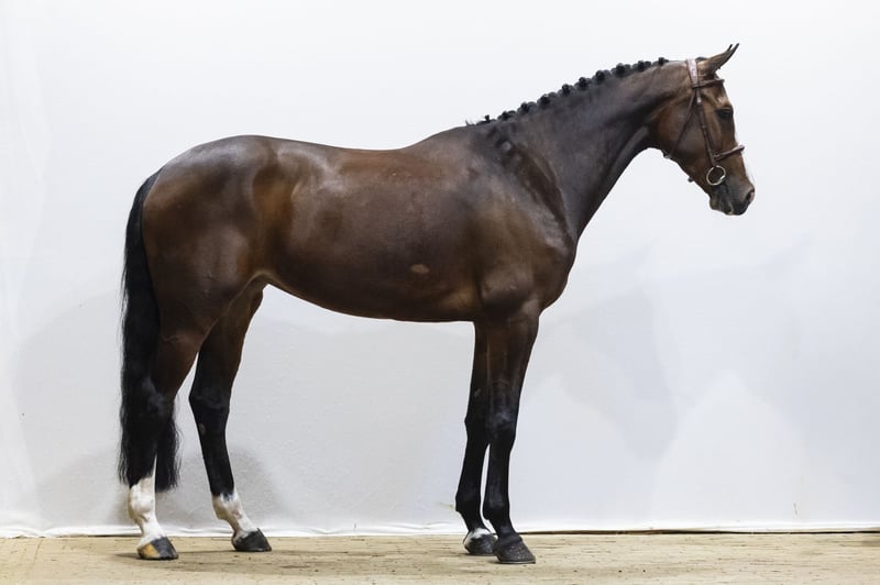 A beautiful, long-legged horse that radiates quality. Light-footed in his movement and modern in type. A horse that immediately stands out for his balance and presence. He jumps with a good technique, is careful over the fences and shows easy scope. At the same time, he remains balanced and correct in his technique. With his style and movement, he would also not look out of place in the hunter ring. In short, a very interesting horse for both sport and presentation.