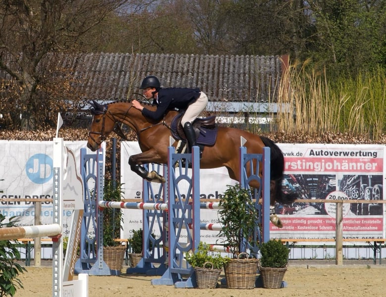 For sale is my 7-year-old mare Olympia Donna – a true heart horse. She is sired by Balou de Rouet × Michael, approximately 16.1 hh tall, and impresses with her rideability, lightness, and an exceptionally gentle nature. She has already proven herself in sport: - L-Show Jumping: 2nd place - A**-Show Jumping: won - E-Dressage: won Olympia always works honestly, aims to please her rider, and confidently carries her through courses, the arena, and cross-country. She is loading and farrier-friendly, has no bad habits, and is an absolute treasure both in handling and under saddle. Lovingly called Lumpi by us, she is loyal and affectionate with everyone. I wish for her a caring home where she can continue to be supported and appreciated. Interested? Please contact us at 017622099284 🐎✨