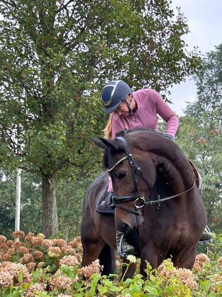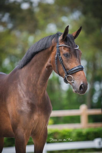 New Style is an elegant 8-year-old mare from a highly reputable sport lineage. She is classified as a dressage horse at level M and has won nearly all her competitions. She has never scored below 68%. She is fully radiologically sound and free of any (stable) defects. Photos including her back and neck are available. New Style is a affectionate and sensitive mare. She is easy to handle and ride. She moves lightly, with great suppleness and enthusiasm for work. While she has a strong aptitude for dressage, she also enjoys outdoor riding, cross-country, and jumping. New Style is fearless and appreciates variety. She is ideally suited for a rider who values a sensitive, intelligent horse with 'go'. She comes directly from the breeder. As a foal, she was champion and participated in the National Foal Championships (NMK). Her family, including her grandmother Vienna D, can be viewed here. She is of interest for both sport and breeding, with several licensed and GP horses coming from her dam line. New Style has two stunning offspring. At her inspection, she scored 80 points for movement and 80 points for conformation. Her pedigree: Incognito x Ampere x Jazz (Vienna D). For more information about New Style’s sport lineage, please visit our Facebook page ‘DALMHORSES’.