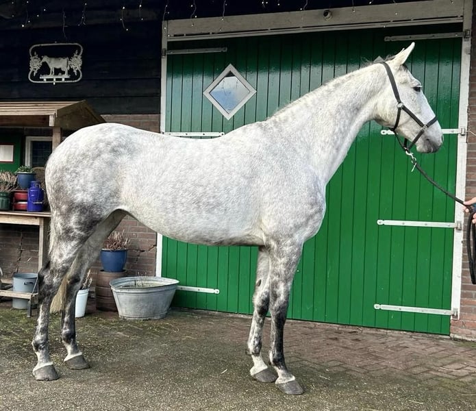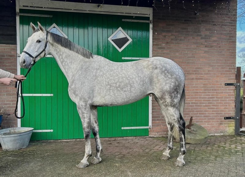 Very interesting KWPN (PROK) broodmare from the maternal line of Arezzo VDL and Nacorde (3-time Hamburg Derby winner). A beautiful type with a lot of blood. She has also competed up to 1.00 m show jumping level. She is in foal to the exclusive sport stallion Faltic HB (Ben Maher). Faltic recently placed third in the CSI5*-W World Cup Grand Prix (1.60 m) in Washington (October 2025) and also achieved third place in a 1.55 m class there. He contributed to the British team's bronze medal at the World Equestrian Games in Herning and finished fourth individually at the European Championships in Milan. This reflects the remarkable pedigree of a stallion well known among riders. Expected foaling date: April 1, 2026. She is very sweet and easy to handle, even during veterinary procedures and similar situations.