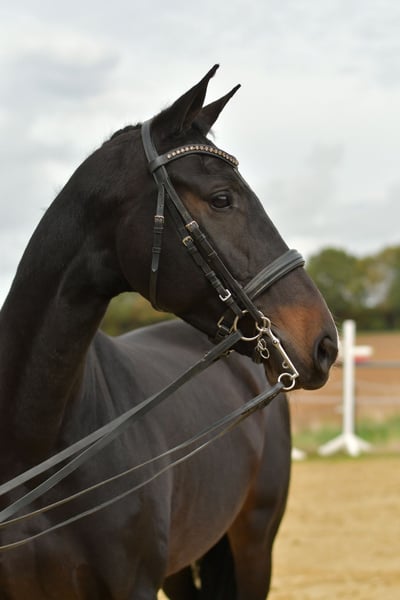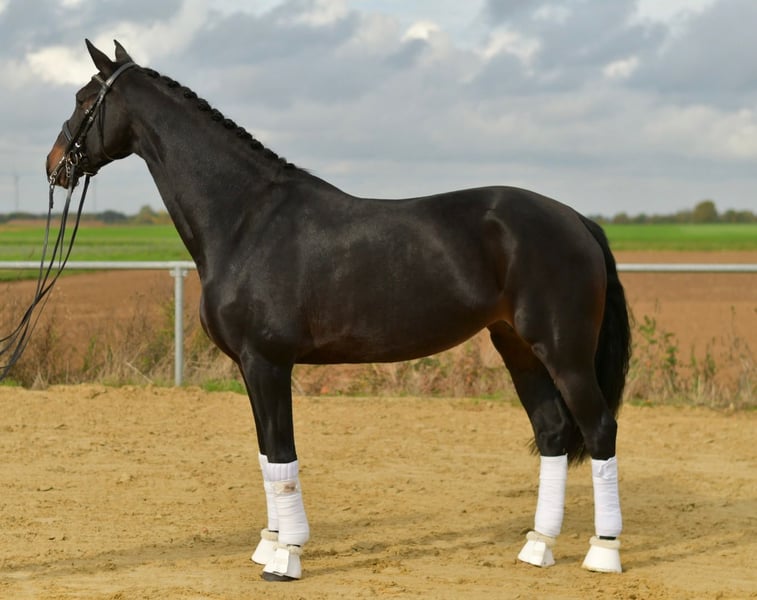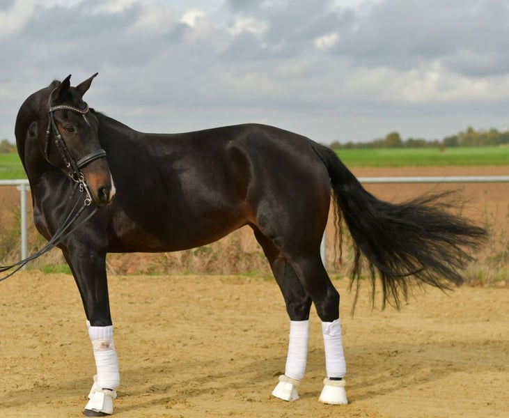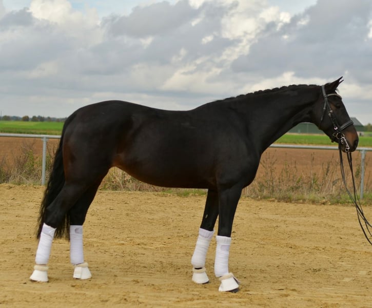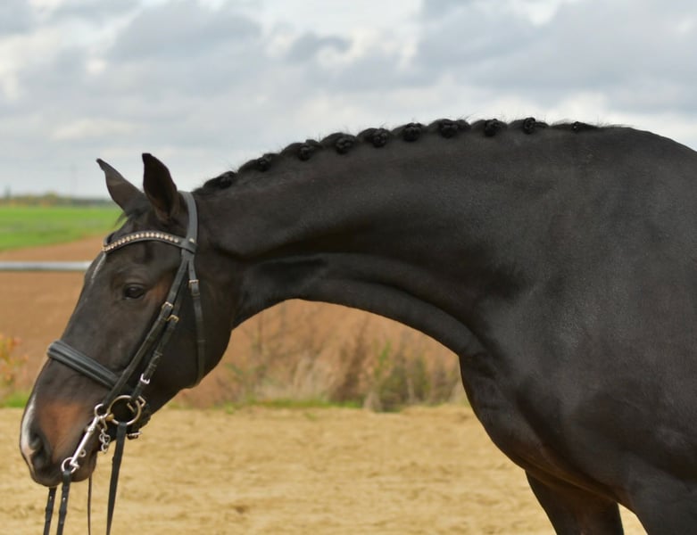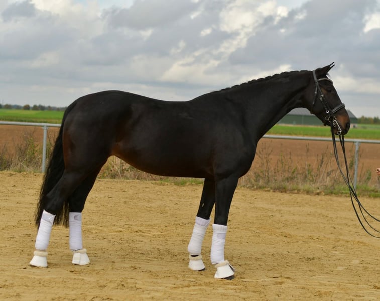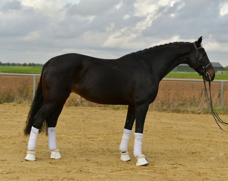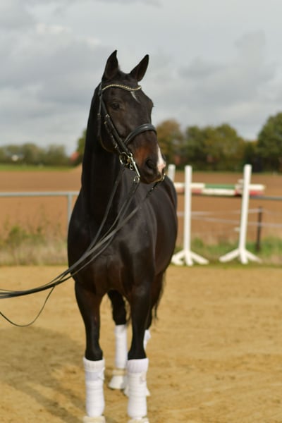For sale is our impressive KWPN mare, born in 2017, standing at 16.1 hh, with an elegant black-brown coat. This talented mare has a wonderful temperament and has already been successfully presented in Medium dressage competitions. With outstanding pedigree, tracing back to the renowned grandsire Totilas, she not only boasts excellent bloodlines but also offers a promising future in the show ring. Her three exceptional basic gaits make her an ideal choice for riders aiming for success in both dressage and recreational riding. In handling, our mare is very well-behaved and child-friendly, making her an excellent transition horse from pony to horse. She is equally suitable as an entry-level school horse for children, as well as for experienced competition riders or advanced leisure riders seeking a horse with potential. We are confident that, in a loving home with prospects for a successful competition career, she will be the perfect partner. The mare has a complete health certificate, including assessments of her neck and back, with no findings. She is ready to go and can be presented at competitions immediately. Trial riding, demonstrations, and free riding are available for €50, which will be deducted from the purchase price if you decide to buy. We will gladly send videos providing an initial impression of the mare. However, we emphasize the importance of a personal trial, as the chemistry between horse and rider cannot be fully assessed via videos. The health certificate will be issued after the trial and viewing, and it remains without findings. If you are interested in this extraordinary mare and can offer her a loving, promising home, we look forward to hearing from you!