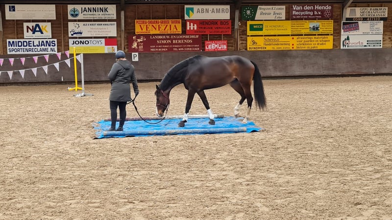 Wunderschöne dunkelbraune Elite IBOP-Prok D-oc Stute Stockmaß 1,70 m James Bond x G Ramiro Z Kwpn Sehr gute sportliche Mutterlinie Dressur Diese liebe Stute ist eher phlegmatisch als nervös oder sensibel. Sie ist unkompliziert im Anhänger und beim Verladen und fährt gerne mit. Ob auf dem Platz oder unterwegs, sie ist brav und vollständig verkehrssicher und unternimmt auch gerne Ausritte in den Wald, sowohl alleine als auch in der Gruppe. Sie läuft erfolgreich in der M-Dressur und bewältigt diese mühelos. Sie verfügt über drei schöne Gänge und viel Leichtigkeit in den Seitengängen, aktuell wird sie auf die Klasse Z vorbereitet. Die einfachen Wechsel meistert sie sehr leicht. Auch mit einem eher unerfahrenen Reiter ist sie brav gewesen und hat keinen Fehler gemacht. Sie macht Sprünge bis zu 1 m Höhe und scheint dabei viel Freude zu haben, egal ob bei normalen Hindernissen oder Naturhindernissen. Sie genießt die Abwechslung im Training deutlich und ist auch als Allrounderin geeignet. Mehrere Videos und weitere Informationen sind per WhatsApp erhältlich. 0031652539025 (sprechen Niederländisch, Deutsch und Englisch)