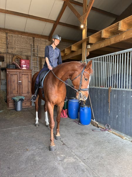 For sale: KWPN mare (2018) This stunning KWPN mare is a true gem for horse enthusiasts seeking a versatile and well-bred horse. Born in 2018, she stands an impressive 17.4 hh and exudes strength and elegance. As a chestnut mare with a striking presence, she has a well-balanced, rectangular conformation with a solid foundation. She possesses a good walk, a trot with plenty of impulsion and power, and a sufficient canter. This well-developed mare is currently ready for further training; she is saddle-trained but has not been extensively ridden. She is highly blooded and requires a clear, consistent rider. We have bred her ourselves and currently have a two-year-old colt by her, and she passes her quality on to her foal. A mare with plenty of size and quality, she has no physical limitations and can be ridden. Our recommendation is for breeding purposes due to her temperament. She is affectionate and friendly when handled but can become tense outside. If you are looking for a high-quality mare with a beautiful size, please feel free to contact us for more information or to arrange a viewing.