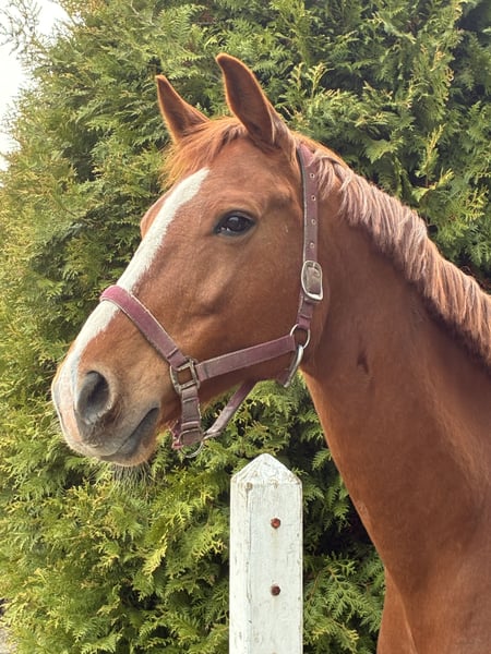 Zum Verkauf: KWPN-Stute (2018) Diese wunderschöne KWPN-Stute ist ein echtes Juwel für Pferdeliebhaber, die ein vielseitiges und gut gezüchtetes Pferd suchen. Geboren im Jahr 2018, verfügt sie über eine beeindruckende Stockmaß von 1,74 m und strahlt Kraft sowie Eleganz aus. Als rotbraune Stute mit einer auffälligen Ausstrahlung. Ein geradliniges, rechteckiges Körperformat mit solidem Fundament. Sie besitzt einen guten Schritt, einen sehr aktiven und kraftvollen Trab, der gut abschließt. Der Galopp ist ausreichend. Diese gut ausgebildete Stute ist derzeit bereit für die weitere Ausbildung, sie ist eingeritten, aber noch nicht weiter trainiert. Sie ist hoch im Blut und benötigt einen klaren, konsequenten Reiter. Mit ihr haben wir gezüchtet und einen zweijährigen Hengst von ihr im Stall, zudem vererbt sie ihre Qualität an ihre Fohlen. Eine Stute mit viel Größe und Qualität, ohne körperliche Einschränkungen, daher berittbar. Mein Rat ist, sie für die Zucht zu verwenden, aufgrund ihres Temperaments. Sie ist im Umgang anhänglich und freundlich, kann aber bei Stress im Außen unruhig werden. Wenn Sie auf der Suche nach einer qualitativ hochwertigen Stute mit schönem Format sind, zögern Sie nicht, uns für weitere Informationen oder eine Besichtigung zu kontaktieren.