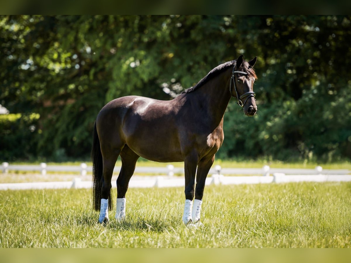 Name des Pferdes: Mylinda Sportname: Mirage Geschlecht: Stute Geburtsdatum: 25-6-2017 Farbe: Schwarz Zuchtverband: KWPN Stockmaß: 164 cm Abstammung: Glock’s Toto Jr N.O.P x Dorado Abzeichen: keine MERKMALE - Eine ansprechende Stute, die gut im Rechteckmodell steht. - Sehr schönes Pferd für die Disziplin Sport Dressur. - Leichte Kopf-Hals-Verbindung, korrekte Halsrichtung. - Gut verlaufender und anschließender Rücken/Lendenbereich. - Feine und harte Beinstruktur. BEWEGUNG - Schritt: Sehr raumgreifender Schritt mit viel Takt und Raum in der Schulter. - Trab: Sehr raumgreifender und tragender Trab mit viel Abdruck und Schwung. - Galopp: Weitläufiger Galopp mit viel Abdruck und Talent zur Versammlung. Zusätzliche Informationen: Erwartungswert im Sport: Leichte Tour Prix St. George. Aufgrund der umfangreichen Möglichkeiten dieser Stute ist sie sowohl für den Sport als auch für die Zucht einsetzbar. Sie hat alles, um erfolgreiche Nachkommen zu bringen, die gut verkäuflich sind und im Sport vorgestellt werden können. Aufgrund privater Umstände wurde diese Stute erst spät auf höherem Niveau trainiert, ab November 2024. Die Stute entwickelt sich sehr gut und ist mittlerweile auf M2-Z1 Niveau vorgestellt worden. VERHALTEN: - (Stall) Mängel: Keine - Untersuchungen Röntgen und klinisch: Röntgen 21-7-2020 - Gesundheitsbeschwerden/Operationen: Keine - Charakter: Feiner und kooperativer Charakter, möchte gerne arbeiten. - Verladen: Sehr einfach zu verladen, auch zusammen mit anderen Pferden auf den Trailer. - Gut gebaute Stute mit ansprechenden aufwärts gerichteten Bewegungen, angenehm im Umgang auch mit anderen Pferden. - Ist leicht nachzureiten, auch durch einen Amateur. KONTAKTDATEN: Olga Boucher, +49 1573 2687370 (bei Interesse an einem Besichtigungstermin) Yvonne Leenders, 06 57 32 25 35 (Eigentümerin)