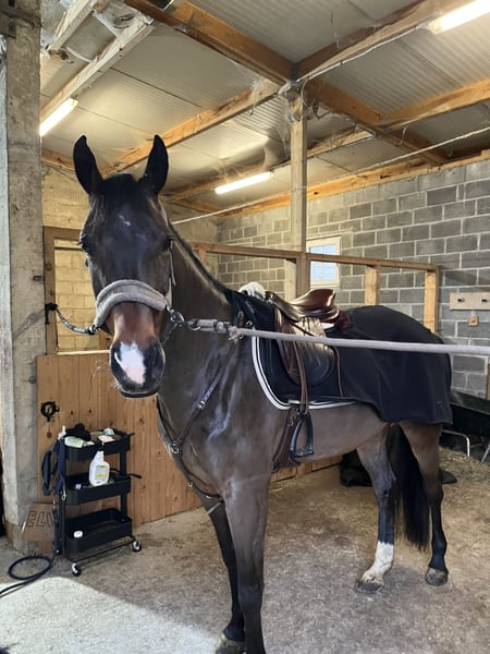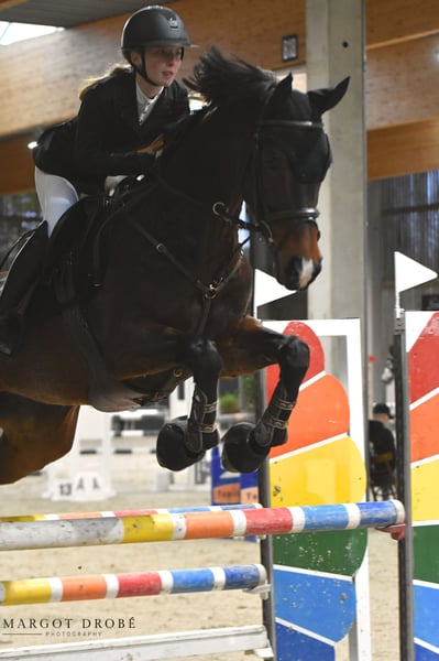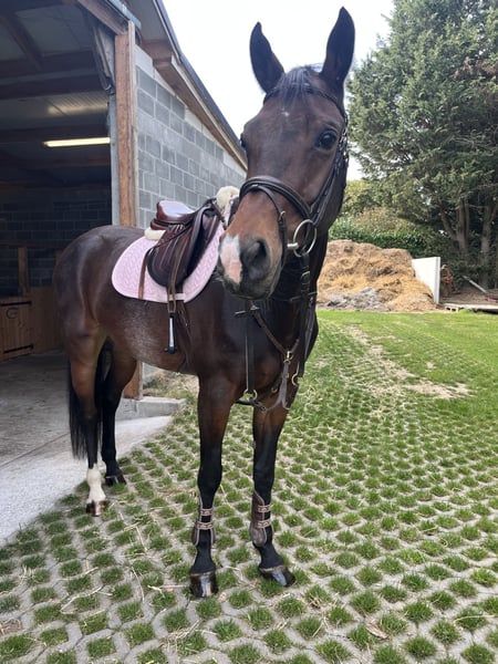 Miss Cobolensky, affectionately known as Cobi, is looking for a new home 🏠. She is a 9-year-old KWPN mare with a height of 165 cm. She is a daughter of Cornet Obolensky and Tanagra M. Cobi is a spirited mare with bloodlines and power, making her unsuitable for beginners. Under saddle, she is energetic and willing, which makes her very interesting for a rider who enjoys sport-oriented riding. She has competed in show jumping up to 1.20 m. At competitions and outings, she is completely unfazed and not spooky at all. Additionally, she has previously foaled. In handling, Cobi is incredibly well-behaved: calm, relaxed, and easy to manage daily. She is good with the farrier and during clipping, and she is easy to keep in the stable. She also gets along well with other horses and always shares her paddock happily. The reason for selling her is that her rider has recently started working full-time and no longer has enough time to ride regularly. For more information, feel free to contact +32485 37 09 46. She is located in Pepingen, Belgium.
