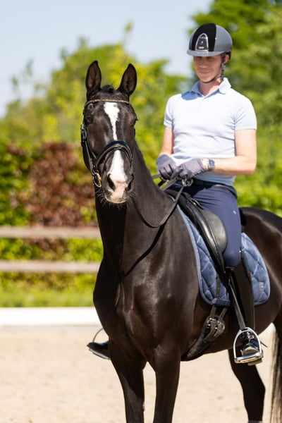 In vendita giumenta di quasi 8 anni. Disponibile esame RX completo. Giumenta coraggiosa con sufficiente energia, ma adatta anche per amatori. Conosce tutti gli esercizi fino al livello 4, esegue cambi di galoppo confermati, ha un galoppo molto forte e dispone di un buon trotto e passo. Cavallo flessibile e facile da montare. Adatto anche per cavalieri para-equestri. Ha già avuto un puledro a 4 anni, quindi non è sovra-allenata. Brava con il maniscalco, durante il trasporto e con il veterinario, non è una giumenta dominante o acida.