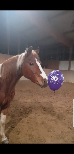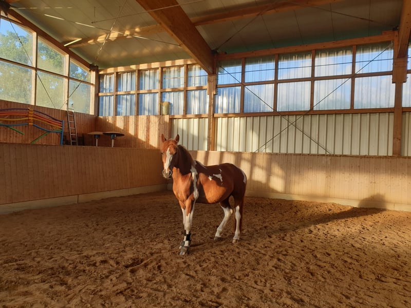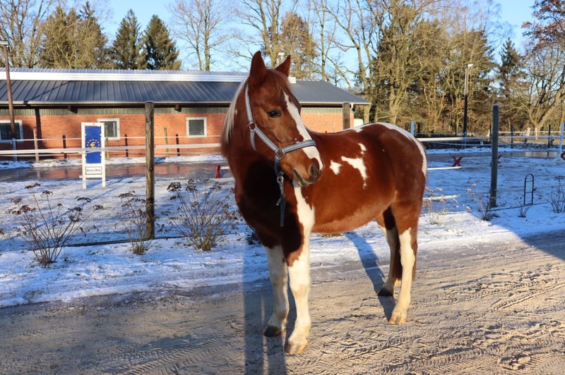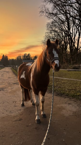 Gigolo ist ein wunderschöner, 9-jähriger Lewitzerwallach, der mit seinem typischen Schecken-Charme und seiner liebevollen Art, sofort Herzen gewinnt. Er überzeugt mit ausdrucksstarken, schwungvollen Gängen und einem ehrlichen Charakter. Er ist meist sehr leistungsbereit durch viel Energie und Motivation unter dem Reiter. Aktuell ist er nur bedingt reitbar, da er in den letzten Wochen wenig gearbeitet wurde. Die Lebensumstände haben sich drastisch verändert, so dass wir ihm zeitlich nicht mehr gerecht werden können und uns nun schweren Herzens von ihm trennen müssen. Mit regelmäßigem Training wird er aber schnell wieder in seine alte Form finden - er ist sehr lernwillig und möchte immer gefallen. Er ist sicher im Schritt, Trab und Galopp - sowohl mit als auch ohne Sattel routinierter Einsatz in Reithalle, Reitplatz, Springplatz und Gelände möglich. Seitengänge, Schulterherein und Vorhandwendungen sicher abrufbar. Sehr artig im Gelände - bei neuen Umgebungen anfangs aber etwas unsicher. Kleine Sprünge hat er mit Reiter absolviert und erfolgreich im Freispringen teilgenommen. Gigolo kennt Kühe und Rehe problemlos, beim Thema Hängerfahren ist er jedoch noch nicht erfahren. Er war bisher ein- bis zweimal auf dem Anhänger, ist aber noch nie richtig gefahren bzw. vollständig eingestiegen. Hier braucht er eine geduldige, klare Anleitung. Gigolo ist ein echtes Herzenspferd : verschmust, Menschen bezogen und mit viel Charme. Typisch Pony ist er sehr verfressen, arbeitet aber motiviert mit und möchte vieles richtig machen. Allerdings ist er nicht für jeden geeignet – er ist kein Anfängerpferd, da er sensibel ist und über viel Power verfügt. Er braucht einen Menschen, der ihm vertrauen und Sicherheit gibt, dann ist er ein absoluter Partner fürs Leben. Der Verkauf erfolgt inklusive kompletter Ausrüstung (Bundeswehrschrank , Sattel, Trense, Decken, Halfter etc.), da der Reitsport vollständig aufgegeben wird. Gigolo ist ideal für jemanden, der ein verlässliches Freizeitpony sucht, das mit Vertrauen, Liebe und regelmäßigem Training sein volles Potenzial zeigen kann.