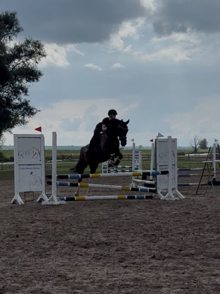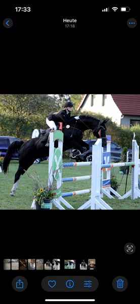 Zuverlässiger Lehrmeister mit Herz zu Verkaufen. Zum Verkauf steht unser 2008 geborener Wallach Mantis. Mantis hat einen Stockmaß von ca.1,54m. Mantis ist ein sehr erhliches, verlässliches Springpferd,mit viel Potential und Motivation. Im Pacour trägt er ein mit leichtig keit und liebt es gut abzuschneiden und zu zeigen was er kann. Er ist auf Turnier mit mir bis zur Klasse A** gelaufen. Er kann manchmal etwas Hecktisch beim Springen sein, aber trotzdem ist er gut händelbar und rittig. Gelände reiten ist bei ihm auch kein Problem, jedoch muss man ihm bei Galloppieren manchmal etwas zurück halten Mantis wird bei uns nur im Offenstall gehalten und steht Problem los mit anderen Pferden zusammen.