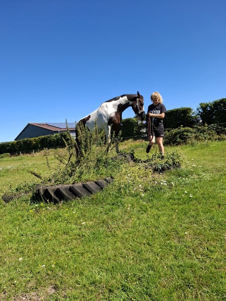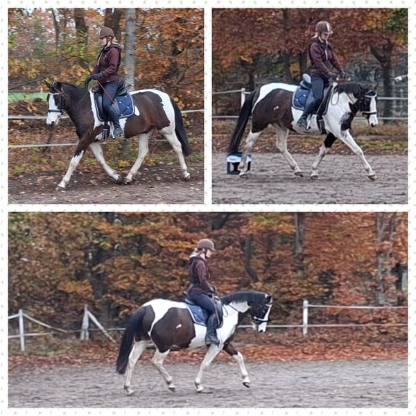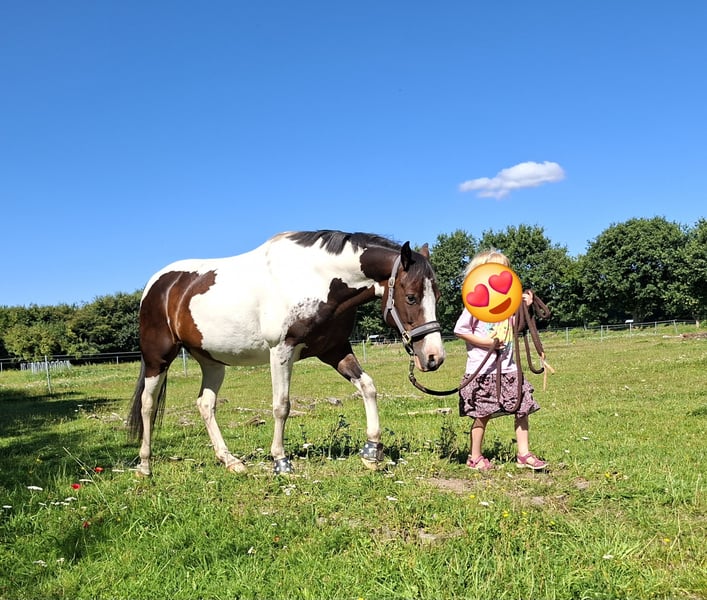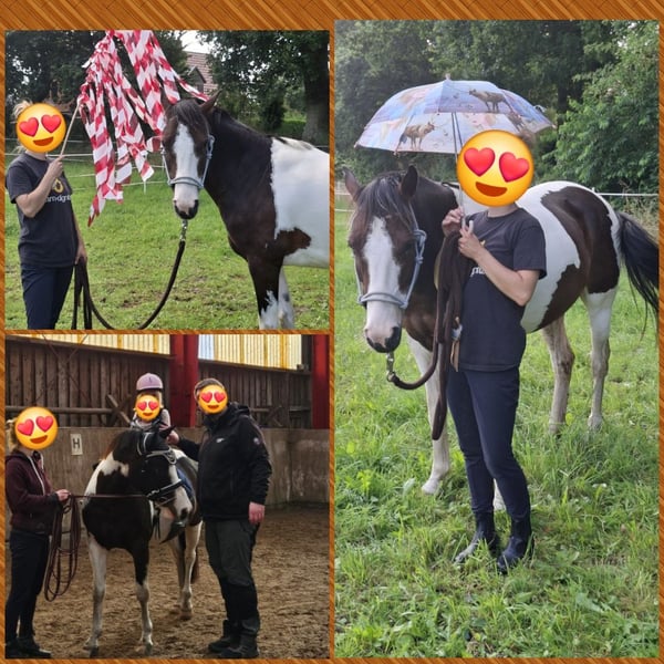 Mit schweren Herzen muss ich wegen Familierer Veränderung für mein Pony ein neues 5 Sterne Zuhause suchen . Wir hatten es mit " zur Verfügung" versucht ,aber da sich leider nicht an Abmachungen gehalten worden ist habe ich ihn nun doch wieder zu mir genommen und suche das perfekte zu Hause für mein Herzenspony. Shadow ist ein 7 jähriger vielseitiger Lewitzer Wallach mit einem Stockmaß von ca 145 cm , deckt durch seinen Körperbau sehr gut ab und wirkt deutlich größer . Ich bin selber 164 cm groß. Er ist ein absoluter Herzensbrecher und sucht die Nähe & Kontakt zum Menschen , ist immer freundlich, neugierig , zugewant . Auch wenn er , wenn es um seine Möhrchen geht etwas gierig werden kann 🥰 Auf der Koppel kommt er einem mit einem freundlichen grummeln entgegen . Steht entspannt ohne zu hampeln beim putzen , sattels ect. Er ist für jeden Spaß zu haben und kennt Schrecktraining mit Planen, Flatterband ect. Auch Strand, Geländepark , Stoppelfeld und Turnierplatz sind keine Fremtwörter für ihn . Er ist als Turnierpony eingetragen Er wird bei mir abwechslungsreich gearbeitet das heißt reiten auf dem Platz / Halle , Eqikenetic, Trail , Stangenarbeid aber auch ausreiten gehören zu seinem alltäglichen training. Auch kennt er es am Kinderwagen zu laufen. Ich reite ihn hauptsächlich freizeitmäßig in der Dressur, er macht aber auch über dem Sprung eine gute Figur und es macht ihm auch deutlich spaß. Mit der Vorbesitzerin war er auch bereits auf Geländeturnieren unterwechs. Er ist eher der gemütliche Typ , als ein Rennsemmel aber keinesfalls triebig. Meine 6 jährige Tochter reiten alle 3 Grundgangarten an der Longe auf ihm. Er steht bei uns in einer großen Gemischten Herde mit ca 20 Pferden . Im Sommer 24/7 auf Koppel und im Winter Nachts in der Box . Im Sozialverhalten zeigt er sich auch hier freundlich und zugewand, stress geht er aus dem Weg. Er wurde immer regelmäßig entwurmt , beim Zahnarzt, Osteopath und beim Schmied vorstellt wo er brav steht und alle vier Hufe brav gibt. Er war nie Krank und hat auch keine Vorerkrankungen. Natürlich kann eine AKU auf Kosten des Käufers durchgeführt werden. Er besitzt einen Pass und ist 100 % verladesicher . Was ich mir für ihn wünschen würde wäre ein Zuhause bei liebevollen Menschen mit Pferdeverstand die ihn weiter fördern und ausbilden , denn mit seinen 7 jahren ist er noch lange nicht am Ende seiner Ausbinderildung . Zubehör wie Decken, Trense , Putzsachen , Gamaschen bringt er mit in sein neues Zuhause. Sein Prestige Dressursattel kann gegen Aufpreis gerne mit erworben werden Videos können bei ernsthaften interesse gerne versendet werden