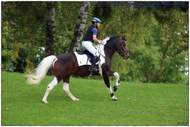 Nandino est un poney Lewitzer comme sorti d’un livre d’images, superbement marqué avec un visage magnifique et un caractère idéal que l’on ne pourrait pas souhaiter de mieux. Très calme et posé, tout en ayant de belles allures et une grande facilité de conduite. Il connaît déjà le vocabulaire de base pour un poulain et adore être câliné. Son père, Guardian Star, est un étalon de performance qui a reçu, comme son père Greenhorn (étalon fédéral de l’office fédéral FN et étalon d’élite), la note maximale de 10,0 pour le caractère et la sociabilité. La mère de Nandino, Ruby, est une poulinière primée, championne nationale ZfdP et descend d’un étalon d’élite et de performance, Shawan. Elle est également la sœur complète du champion national et étalon de performance, Smaragd. Nandino possède donc une origine exceptionnelle, qui se reflète certainement dans sa qualité et son tempérament. Il serait un excellent poney de loisir pour enfants et adultes, avec la possibilité d’envisager une carrière sportive.