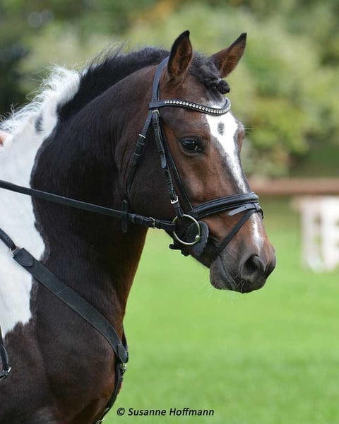 Nandino is a textbook-perfect Lewitzer, beautifully built with a stunning face and a temperament that couldn't be more desirable. Very calm and cool, yet with good movement and easy to handle. He already knows the basics of foal training and loves being fussed over. His sire, Guardian Star, is a performance stallion who, like his sire Greenhorn (FN Federal Premium and Elite Stallion), received the highest possible score of 10.0 for temperament and sociability. Nandino's dam, Ruby, is a premium mare and ZfdP Federal Champion Mare, descending from the elite and performance stallion Shawan. She is also a full sister to the Federal Champion and performance stallion Smaragd. Nandino boasts an excellent pedigree, which is clearly reflected in his quality and character. He would make a wonderful leisure pony for children and adults alike, with the potential for sporting ambitions as well.