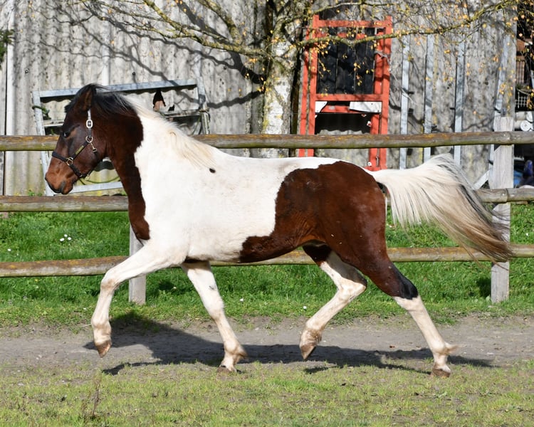 Ori ist ein sehr schicker Junghengst mit guten Bewegungen, stets im Takt und mit schönem Raumgriff. Dazu hat er ein stabiles Fundament und auch sein Körperbau lässt keine Wünsche offen. Aber besonders begeistern kann er mit der Lewitzer typischen Nervenstärke und Gelassenheit und seinem menschenbezogenen Wesen. Er wäre durchaus für die Zucht interessant, aber genauso auch als zukünftiges Kinderpony, dann sollte er allerdings noch kastriert werden.